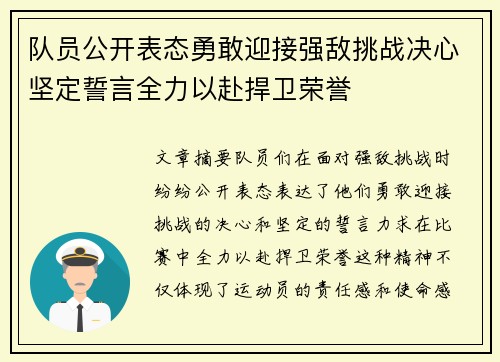 • 队员公开表态勇敢迎接强敌挑战决心坚定誓言全力以赴捍卫荣誉