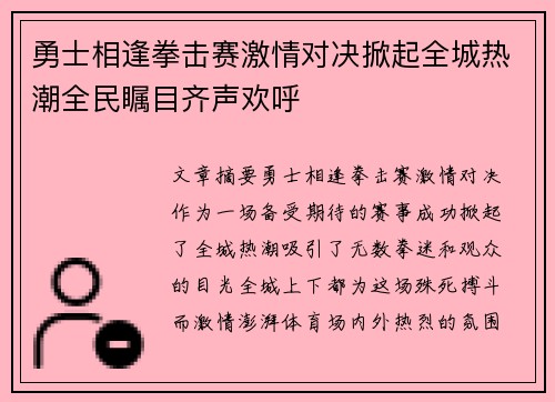 • 勇士相逢拳击赛激情对决掀起全城热潮全民瞩目齐声欢呼