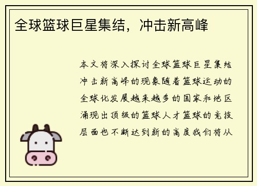 本文将深入探讨全球篮球巨星集结,冲击新高峰的现象。随着篮球运动的全球化发展,越来越多的国家和地区涌现出顶级的篮球人才。篮球的竞技层面也不断达到新的高度。我们将从以下四个方面进行详细分析:全球篮球巨星集...